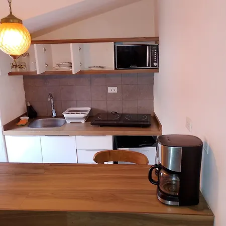 A konyhában mikrohullámú sütő, hűtő és kenyérpirító található. Az apartman csaknem egy 5 perces sétára található a Cristo Blanco buszmegállótól.